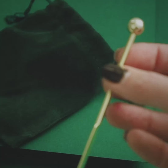 Have you ever sat down to practice and you cant find anything to stir your ink with? Let's not use the end of our beautiful calligraphy pens and use this newly designed tool instead. Its been designed to easily lift up and distribute the stuck pigment on the bottom of the jars. You can use the small cloth to keep your stirrer clean and store both inside your velvet pouch so that you can easily find it again when practicing.