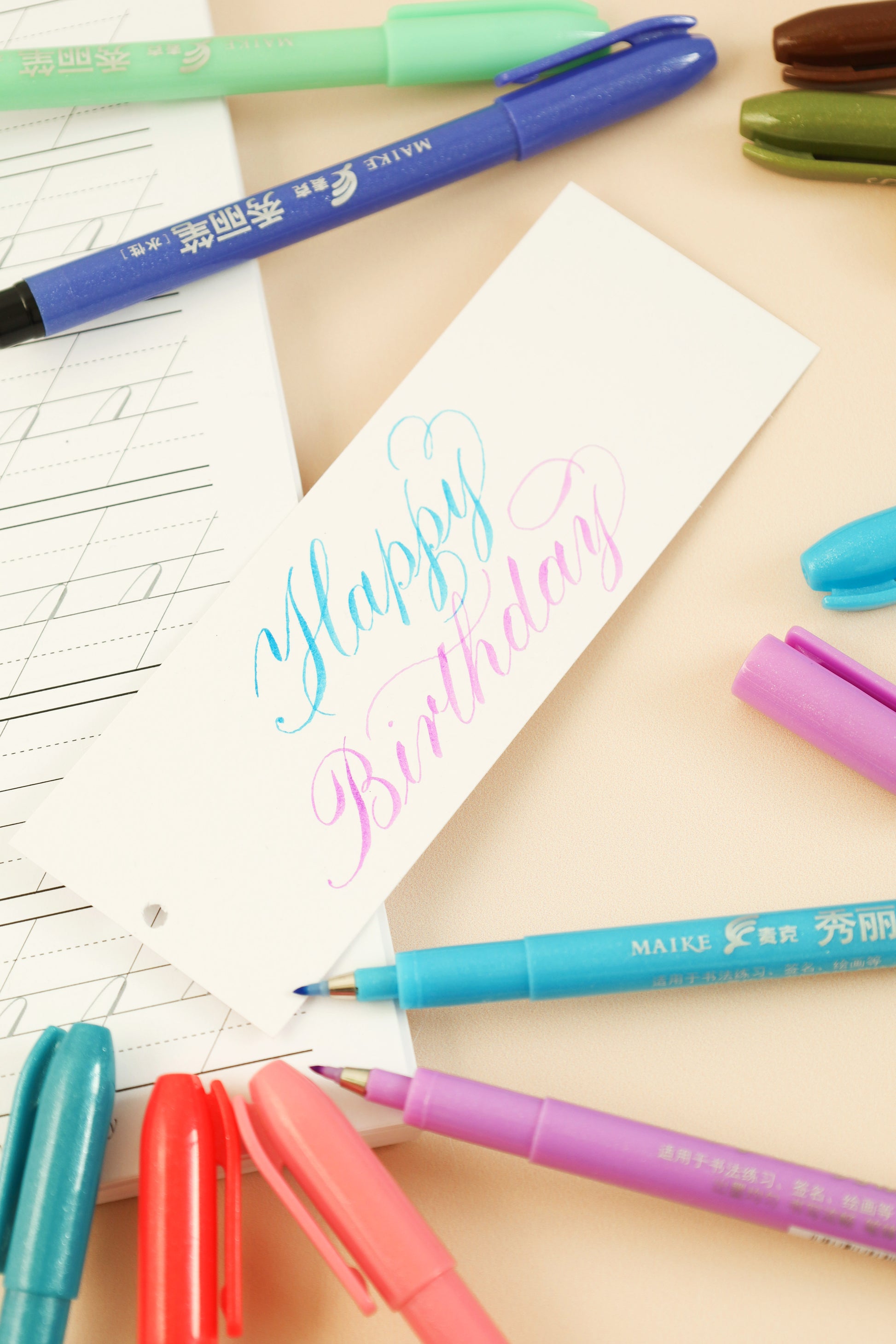 These brush pens have a flexible brush tip and are perfect for calligraphy on the go. They are available as a set of 15 bright colours.