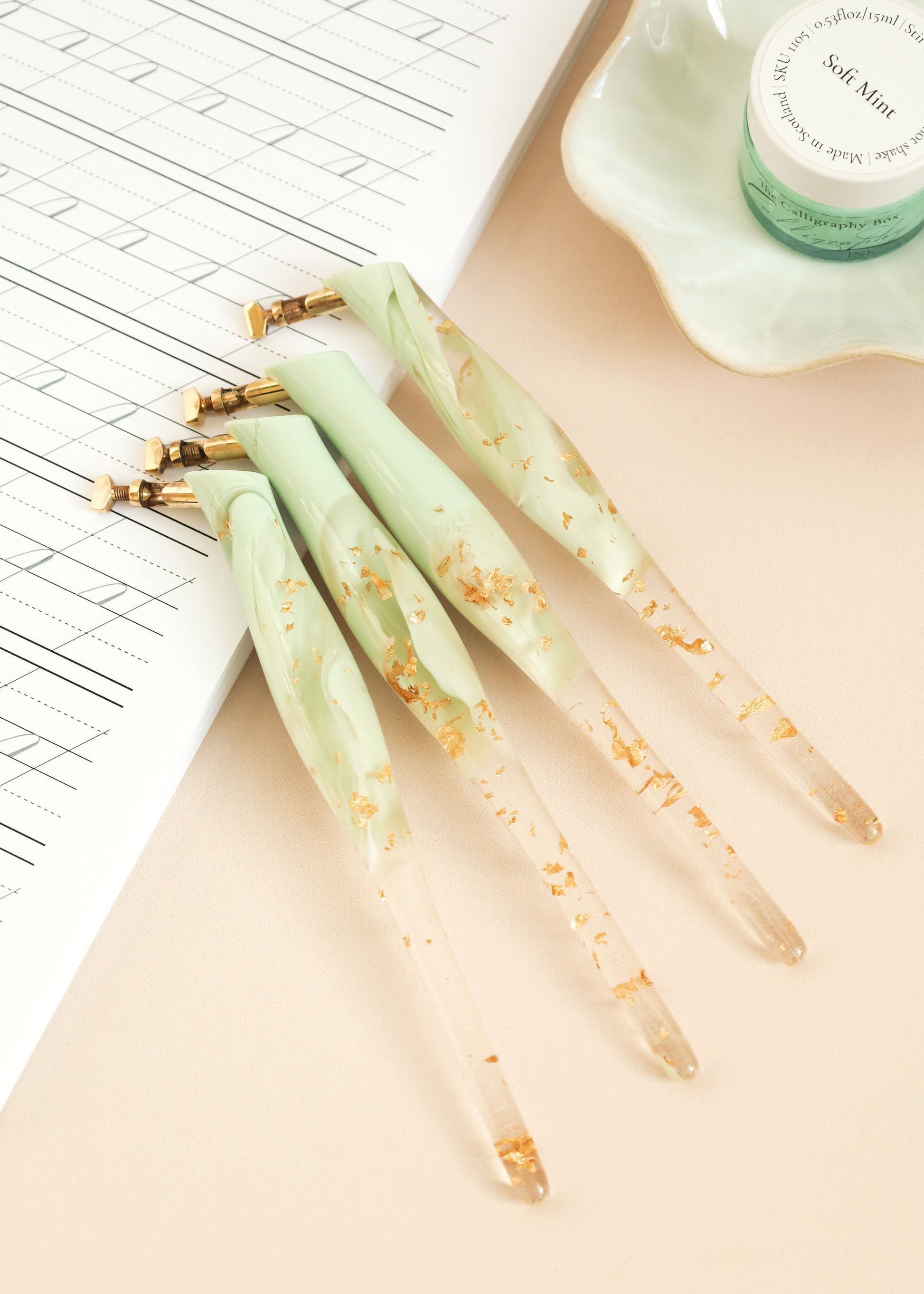 Made by Ash Calligraphy Design. Ash lives and works as a professional calligrapher in India and makes these stunning pens to feel at home in the hands of professionals as well as aspiring calligraphers. Hand-crafted with high quality materials and hand selected wood, this pen is sure to become a trusty companion on your calligraphy journey.