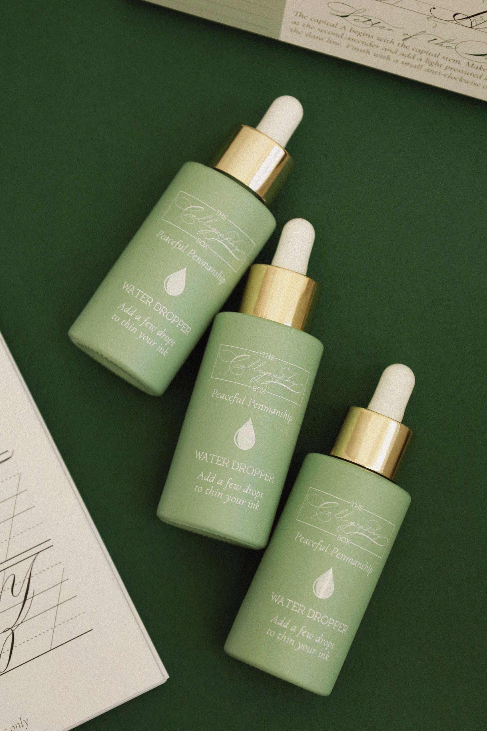 This small water dropper bottle is handy to have in your calligraphy supplies for when you need to thin your ink a little for writing. Store some water inside and add a couple of drops to your ink when needed.